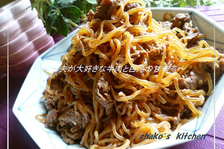 夫が大好きな牛肉と白滝の甘辛煮 レシピ 作り方 By ちゃことゆうな クックパッド