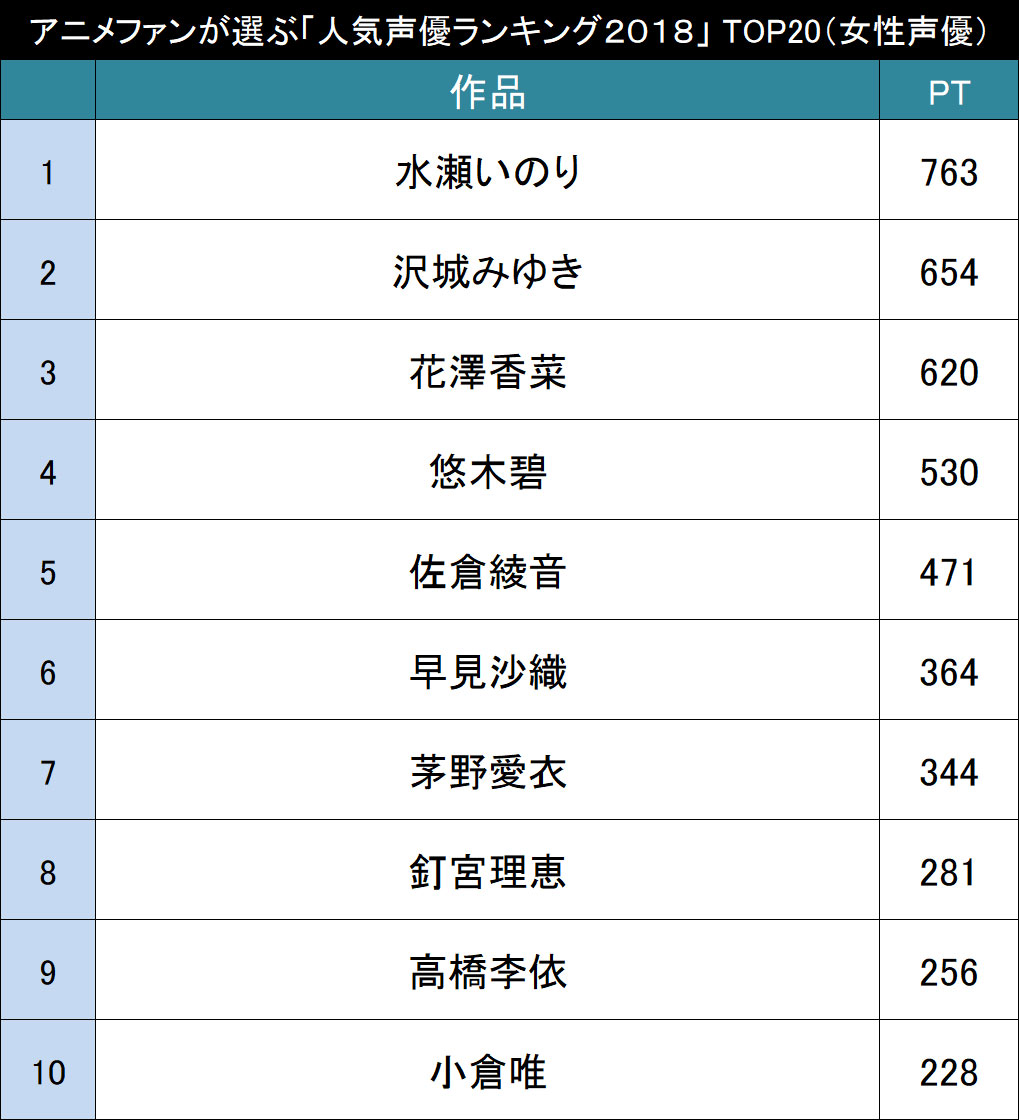 今人気の声優さんは誰 アニメファンが選ぶ 声優人気ランキング2019 Top20 2019年4月18日 エキサイトニュース