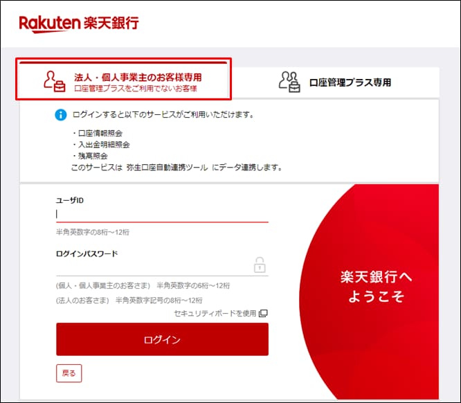 楽天銀行の 個人ビジネス口座 が登録できない 口座連携の設定 サポート情報