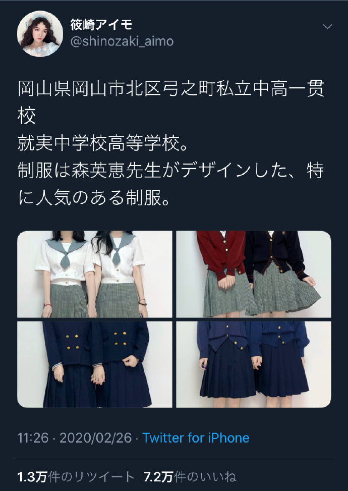 日本冈山县私立中高一贯校 就实中学的新式校服