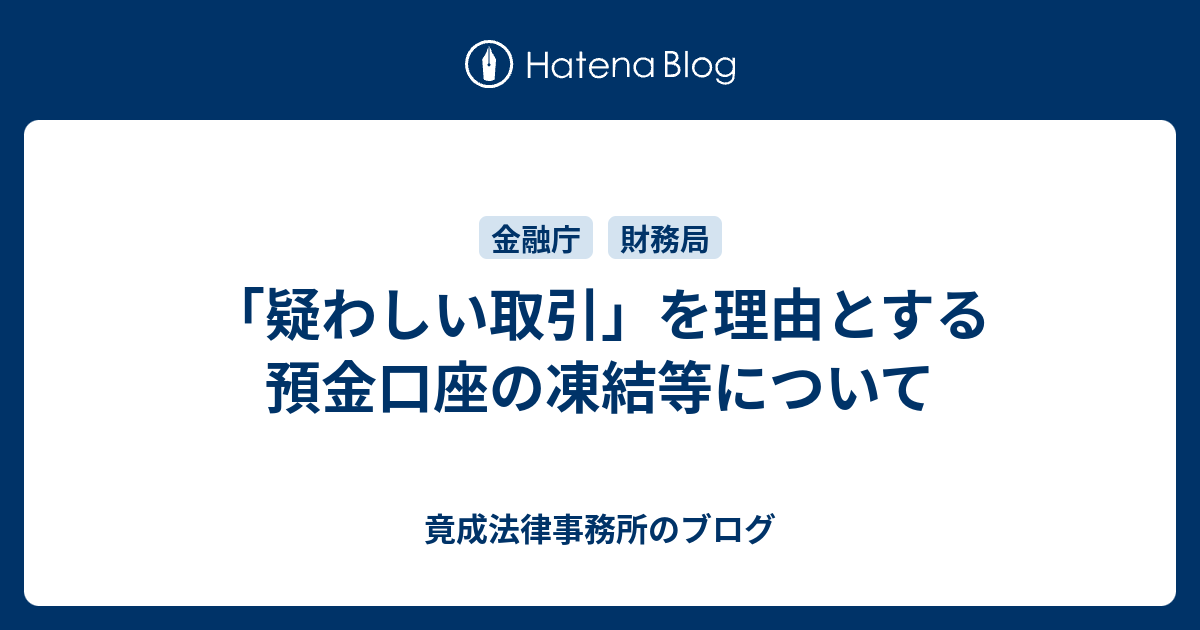 疑わしい取引 を理由とする預金口座の凍結等について 竟成法律事務所のブログ