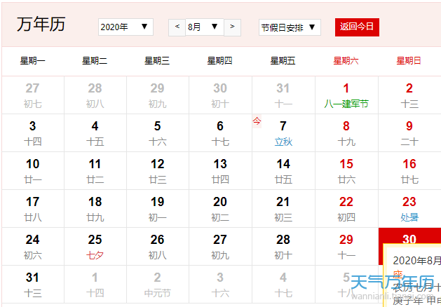 公历8月30日是什么节日2020年8月30日是林则徐诞辰纪念日 万年历