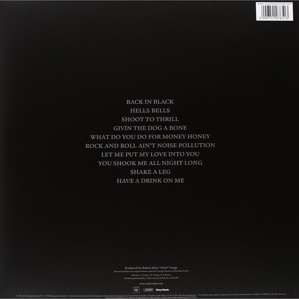 Ac Dc Back In Black 180g Vinyl Lp 5107651 Analogue Seduction