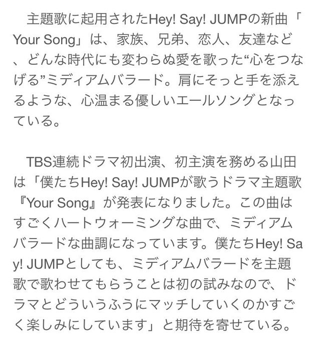 Hey Say Jump ミディアムバラードの新曲 Your Song がドラマ キワドい2人 の主題歌に 主演 山田涼介 どうマッチするか楽しみ Mantanweb まんたんウェブ