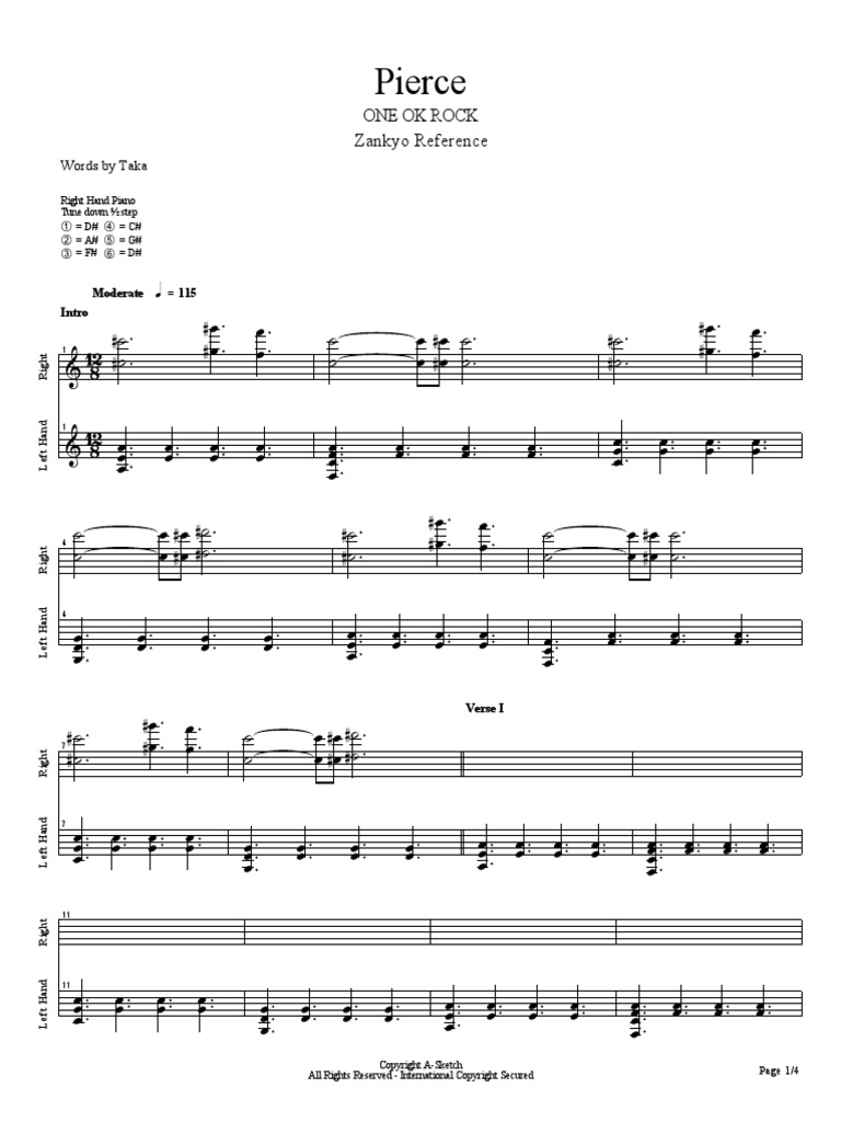One Ok Rock Pierce Piano Sheet Music Pdf Musical Forms Performing Arts